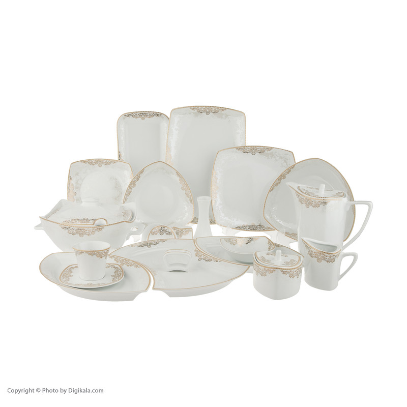 اقلام سرویس : سوپخوری , ظرف سالاد , دیس , بشقاب غذاخوری , بشقاب خورشخوری , پیشدستی , فنجان , نعلبکی , قندان , نمکپاش و فلفلپاش , شیرخوری , پیاله , ظرف سس , گلدان , جای دستمال