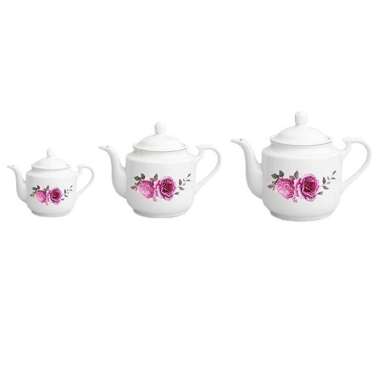 قوری چینی زرین ایران مدل رزفلاور درجه عالی مجموعه 3 عددی