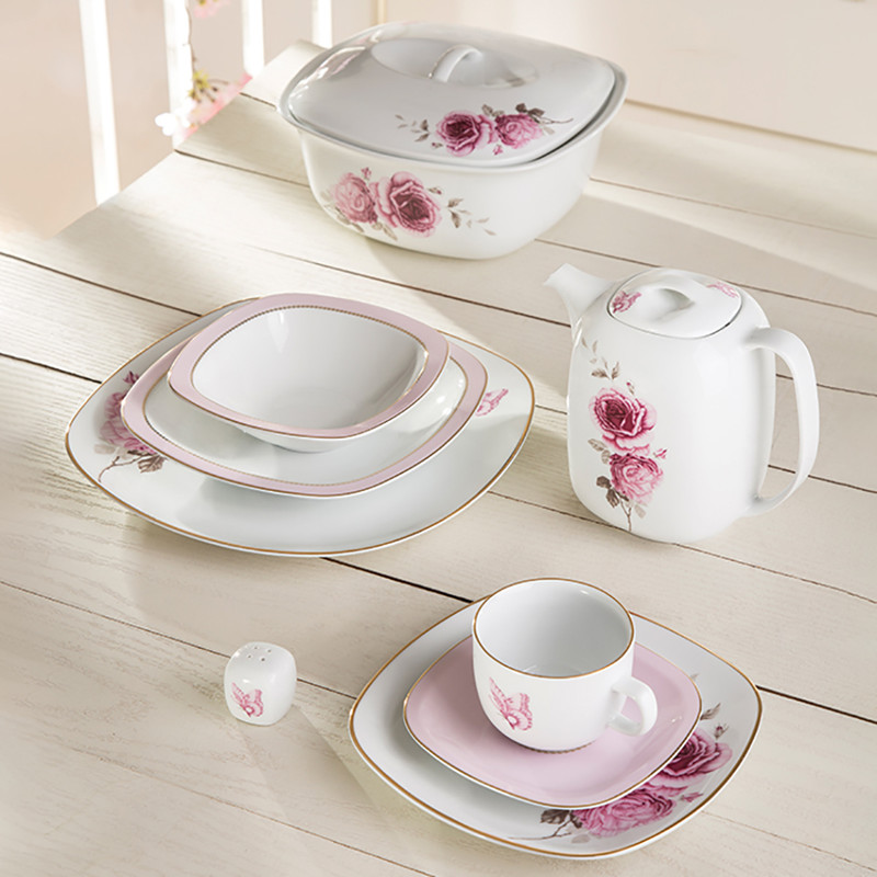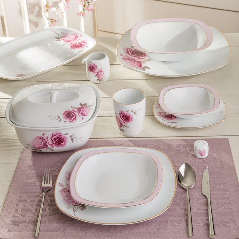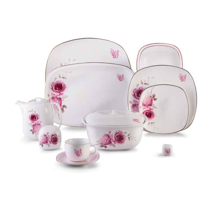 سرویس غذاخوری 98 پارچه چینی زرین ایران سری کواترو مدل رزفلاور درجه یک