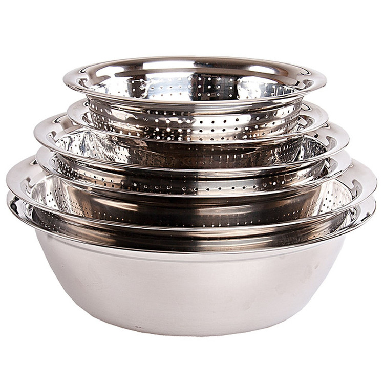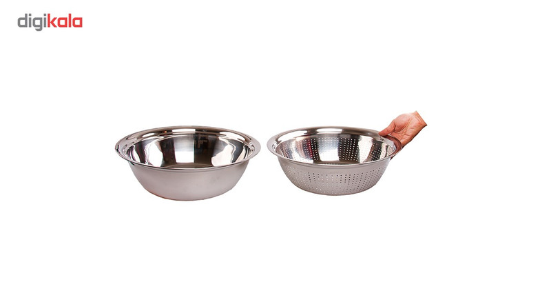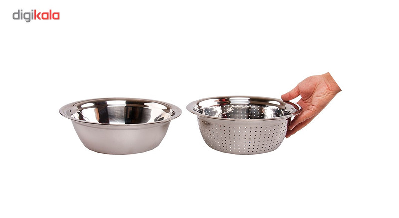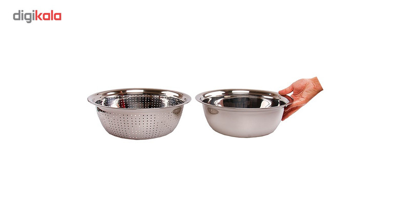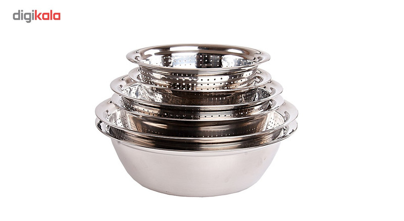 - ست 6 پارچه آبکش و کاسه - شامل سه جفت آبکش و کاسه در سایزهای: 40 ، 33 و 28 سانتیمتر - توجه داشته باشید که این کالا نباید مدت زمان زیاد در تماس با مواد اسیدی و نشاسته باشد