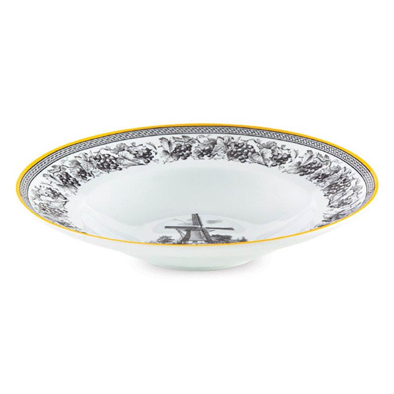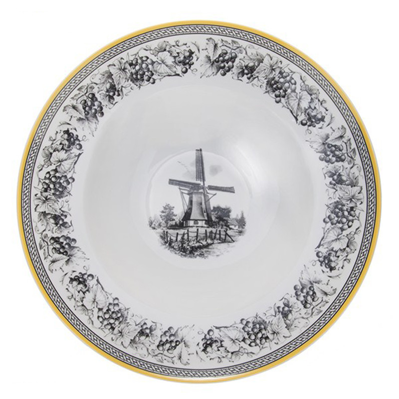 این ظرف با طراحی زیبا و منحصر به فرد خود گزینه مناسبی جهت سرو انواع پاستا و سالاد در رستورانها و منازل است. یک راه حل مناسب و بسیار مدرن برای سرو انواع پاستا، سالاد و سوپ استفاده از ظرف پاستا مدل «ویلیج» (Village) «چینی زرین ایران» است. این بشقاب لبههای پهنی دارد که کمک میکند بتوان انتخابهای زیادی برای تزیین محتویات داخلش داشت. بشقاب پاستا ویلیج به منظور جلوگیری از ریختن سس و مواد مایع، گود طراحی شده و قطری برابر با 30 سانتیمتر دارد که برای سرو پاستا برای 4 تا 6 نفر کافی است. این بشقاب را میتوان با ماشین ظرفشویی شست و نگران تغییر رنگ و پاکشدن طراحیهای آن نبود. با خرید ظرف سرو پاستا، دیگر نیازی به استفاده از دیس برنج و یا سرو به صورت یکنفره نیست و میتوان شرایطی را فراهم کرد که هر مهمان به اندازهی دلخواه خودش غذا بکشد. شکل گرد، طرح انگورهای حاشیه و آسیاب بادی وسط این بشقاب باعث زیبایی و جلوهی بینظیرش شده است. با استفاده از ظروف چینی زرین که با بهرهگیری از آخرین دستاوردهای ساخت ظروف تولید شده و با بهترین کیفیت، ظریفترین و زیباترین ظروف در همه جا در دسترس است، میتوان فرهنگ و تمدن مهماننوازی نیاکانمان را بهعنوان میزبان بیش از همیشه نشان دهیم. این بشقاب در دو درجهی یک و عالی عرضه شدهاند که هر دو، انتخابی ایدئال برای یک میزبانی متفاوت خواهند بود.