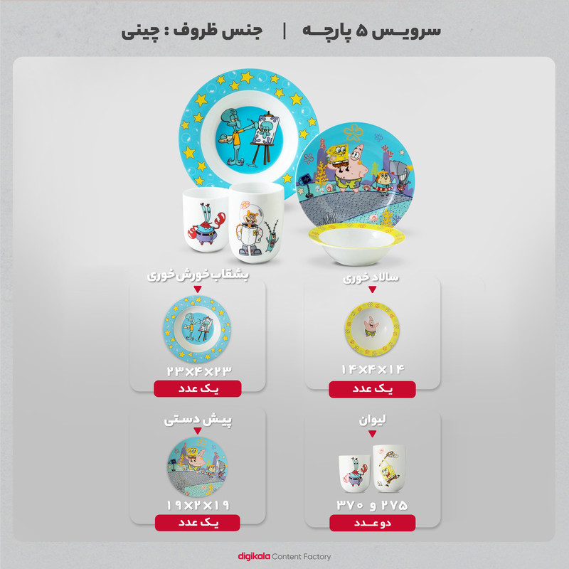 سرویس غذاخوری 5 پارچه کودک چینی زرین ایران مدل باب اسفنجی، با طراحی جذاب و شاداب خود، یک انتخاب مناسب برای ایجاد تجربهای خوشایند و دلپذیر در هنگام غذا خوردن برای کودکان است. این سرویس که شامل سالادخوری، بشقاب خورشخوری، پیشدستی، و لیوان بوده، با استفاده از جنس چینی باکیفیت تولید شده و به دلیل لعاب داخل لعابی که بر روی آن استفاده شده، نقوش زیبای روی ظروف درخشش فوقالعادهای دارند و در برابر شستشوهای مکرر و استفاده روزانه مقاوم هستند. این ویژگیها باعث میشود که والدین بدون نگرانی از پاک شدن نقوش، بتوانند این ظروف را در ماشین ظرفشویی بشویند. علاوه بر این، سرویس غذاخوری باب اسفنجی، با قابلیت استفاده در مایکروویو، به والدین این امکان را میدهد که غذاهای کودک را به راحتی و با حفظ کیفیت ظروف گرم کنند. این ظروف با طراحی خاص و رنگهای شاد، نه تنها کودک را به خوردن غذا ترغیب میکند بلکه به طور غیرمستقیم بر عادات غذایی سالم نیز تأثیر مثبت میگذارد. استفاده از طرح شخصیت محبوب باب اسفنجی روی این سرویس، باعث میشود که زمان غذا خوردن برای کودکان به یک تجربه مفرح و جذاب تبدیل شود.