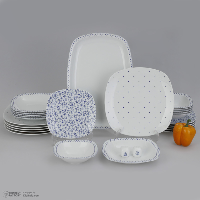 سرویس غذاخوری 27 پارچه چینی زرین ایران مدل کواترو ورنیکا درجه یک با توجه به سبک مدرن زندگی امروز است. این ظروف دارای یک طراحی چهارگوش هوشمندانه و جذاب است که با تکیه بر نهایت سادگی و در عین حال کاربردی طراحی شدهاند. این ظروف جذاب و منحصر به فرد به دلیل طراحی مدرن و هوشمندانهای که دارند، بسیار مورد توجه قرار میگیرند. ظروف چینی کواترو از جنس چینی با کیفیت و مقاوم ساخته شدهاند. طراحی چهارگوش این ظروف، امکان استفاده آسان و راحت از آنها را فراهم کرده است. همچنین، طراحی جذاب این ظروف باعث شده تا زیبایی و شکوه به میز غذاخوری شما اضافه شود. با استفاده از ظروف چینی کواترو، میتوانید لذت غذاخوردن را به مراتب بیشتر کنید. این ظروف مناسب برای استفاده در محیطهای مدرن و شیک هستند و باعث میشوند تا تجربه غذاخوردن شما به یک تجربه لذتبخش و لوکس تبدیل شود. این سرویس ظروف شامل 27 پارچه است که شامل دیس، بشقاب غذاخوری، بشقاب خورشخوری، پیشدستی، نمکپاش و فلفلپاش است. تمامی این ظروف از جنس چینی ساخته شدهاند و برای استفاده توسط شش نفر مناسبند. این ظروف قابل استفاده در مایکروویو و قابلیت شستوشو در ماشین ظرفشویی را دارند. ظروف مرتبط با سرو نوشیدنی شامل بشقاب غذاخوری (یک دست - 6 عدد)، بشقاب خورشخوری (یک دست - 6 عدد) و دیس (یک عدد) است. ظروف مرتبط با دسر و پیشغذا شامل پیاله (شش عدد) و پیشدستی (یک دست - شش عدد) که از جنس چینی ساخته شدهاند. همچنین، ظروف مرتبط با نمک، ادویه و چاشنیها شامل نمکپاش و فلفلپاش (دو عدد) است. این سرویس ظروف ایرانی بوده و از کیفیت بالا و طراحی زیبا برخوردار است.