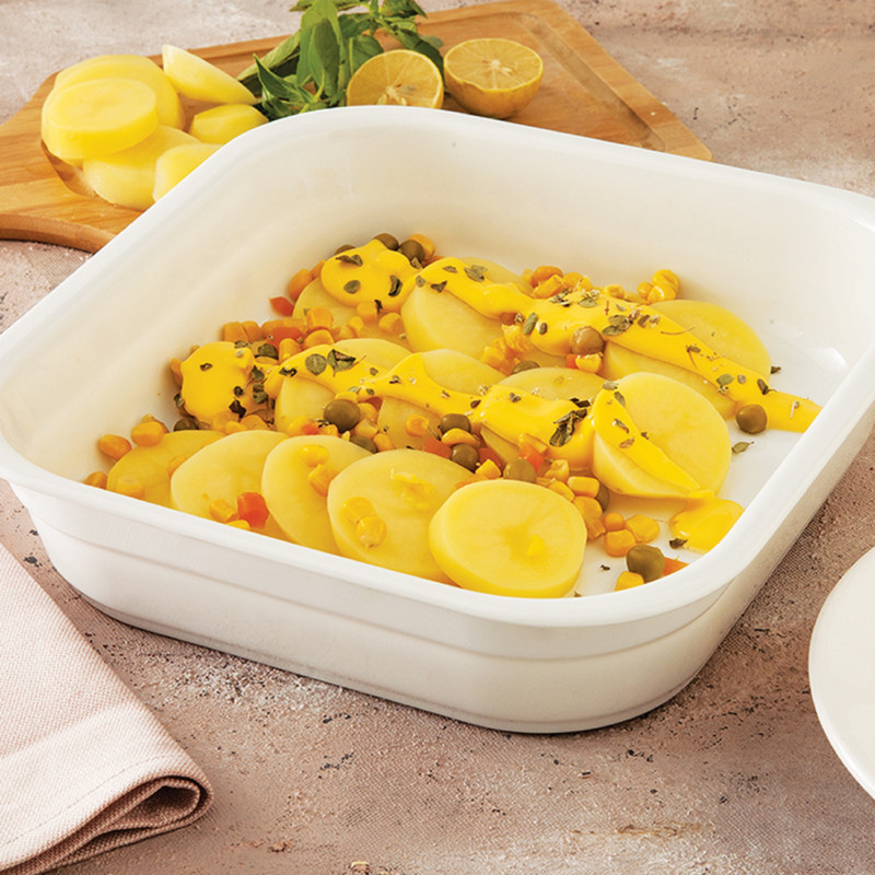 طراحی ساده، شیک و کاملا کاربردی دیس لازانیای چینی زرین، برای پخت انواع لازانیا، سوفله و سبزیجات همچنین انواع دسر و میوه انتخاب مناسبی میباشد.