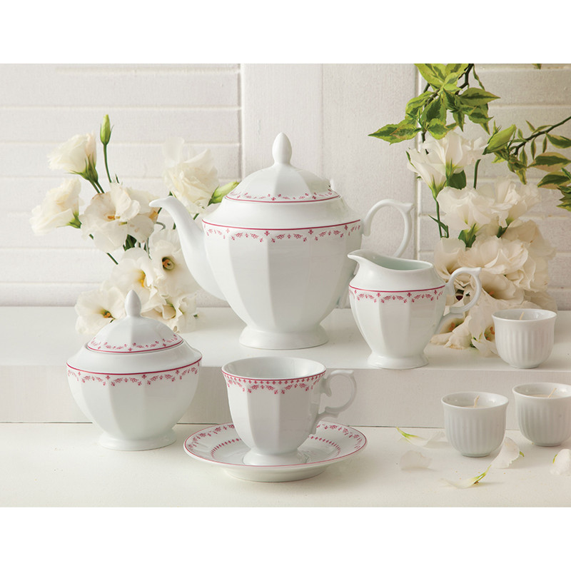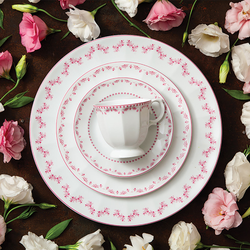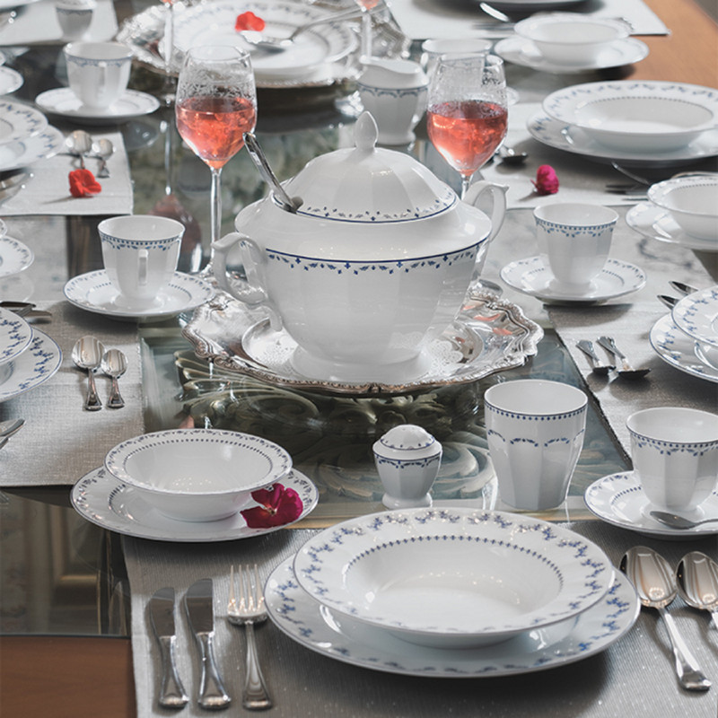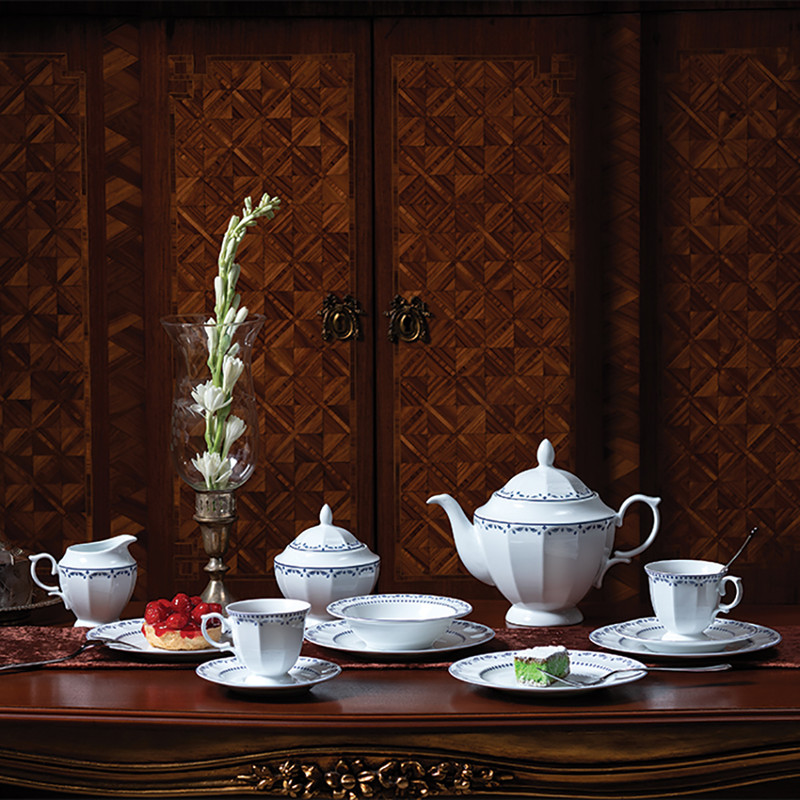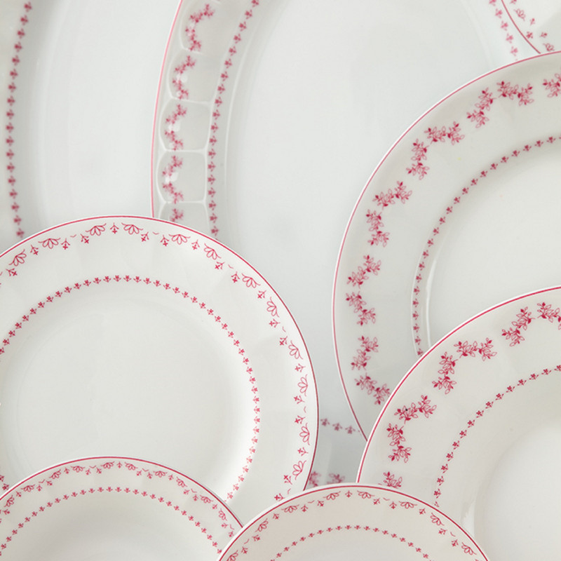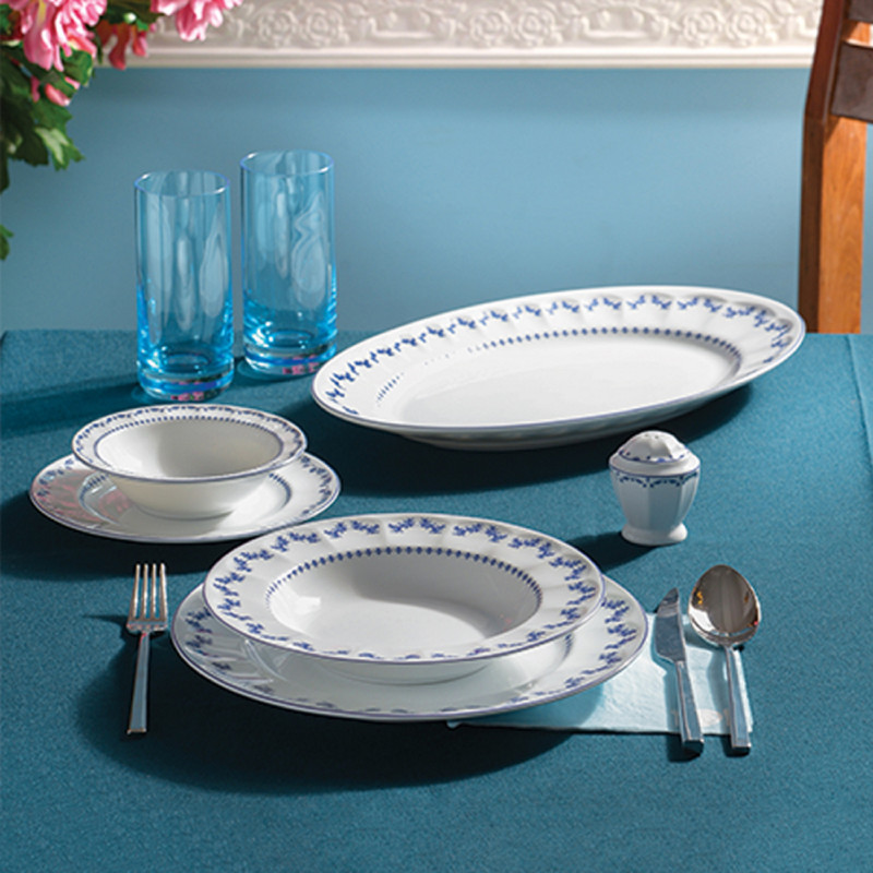 سوپخوری , ظرف سالاد , دیس , بشقاب غذاخوری , بشقاب خورشخوری , پیشدستی , قوری چایخوری , فنجان , نعلبکی , قندان , شکرریز , نمکپاش و فلفلپاش , لیوان , سالادخوری , ادویهپاش